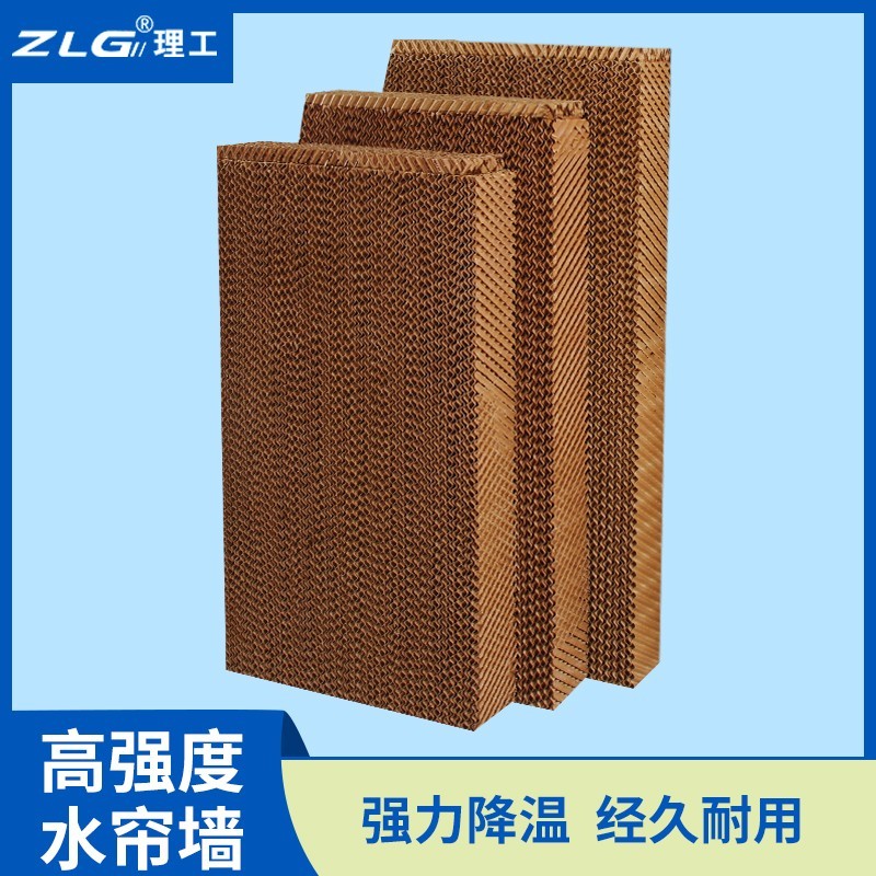 ZLG理工水簾(濕簾)是一種特種紙制蜂窩結(jié)構(gòu)材料,其工作原理是“水蒸發(fā)吸收熱量”這一自然物理現(xiàn)象,即水在重力的作用下,從上往下流, 在水簾(濕簾)波紋狀的纖維表面形成水膜,當流動的空氣經(jīng)過水簾(濕簾)時,水膜中的水會蒸發(fā)吸收空氣中的熱量,帶走大量的潛熱,使經(jīng)過水簾(濕簾)的空氣溫度降低,從而達到降溫的目的。