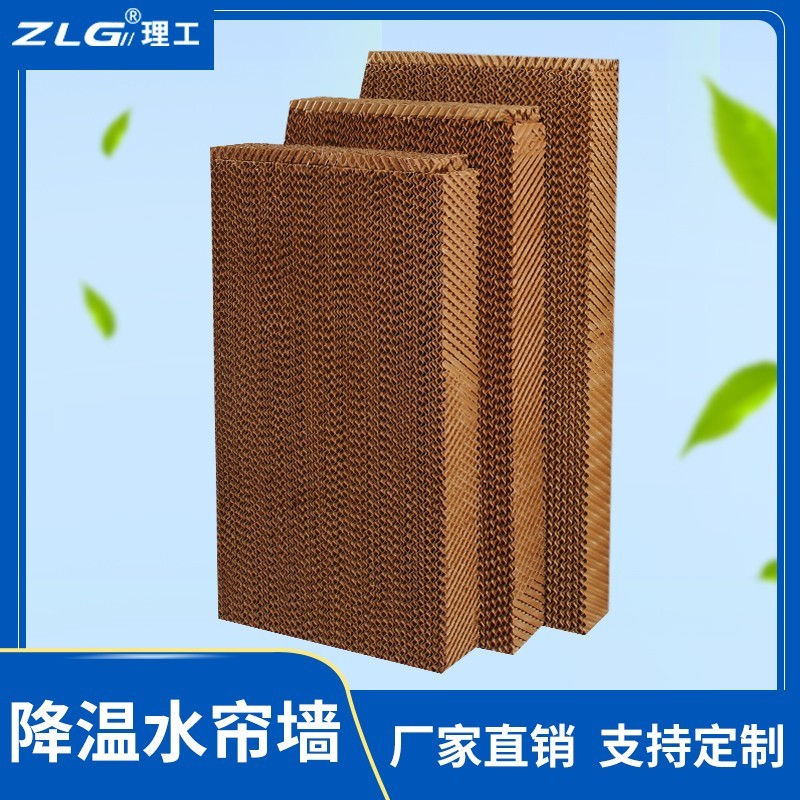ZLG理工水簾(濕簾)是一種特種紙制蜂窩結(jié)構(gòu)材料,其工作原理是“水蒸發(fā)吸收熱量”這一自然物理現(xiàn)象,即水在重力的作用下,從上往下流, 在水簾(濕簾)波紋狀的纖維表面形成水膜,當流動的空氣經(jīng)過水簾(濕簾)時,水膜中的水會蒸發(fā)吸收空氣中的熱量,帶走大量的潛熱,使經(jīng)過水簾(濕簾)的空氣溫度降低,從而達到降溫的目的。
